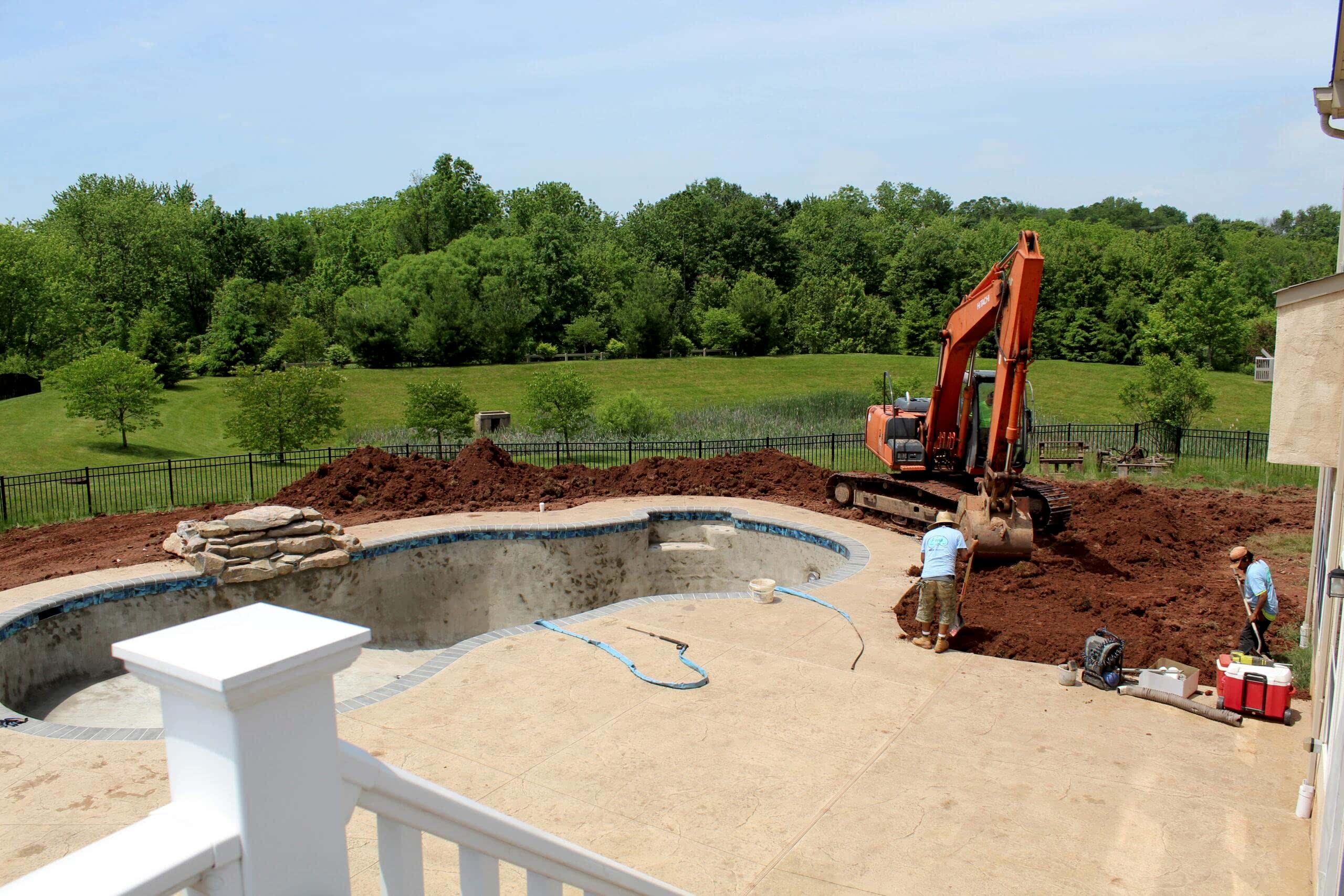 By digging our pools in house we set our dirt grade right when we dig the pool. We do this so that later down the road when the deck is being stoned you will not run into any additional stone charges like you would with many other companies. When digging our pool we hand shape the sides of the entire pool to ensure a true consistency of Gunite all around the pool